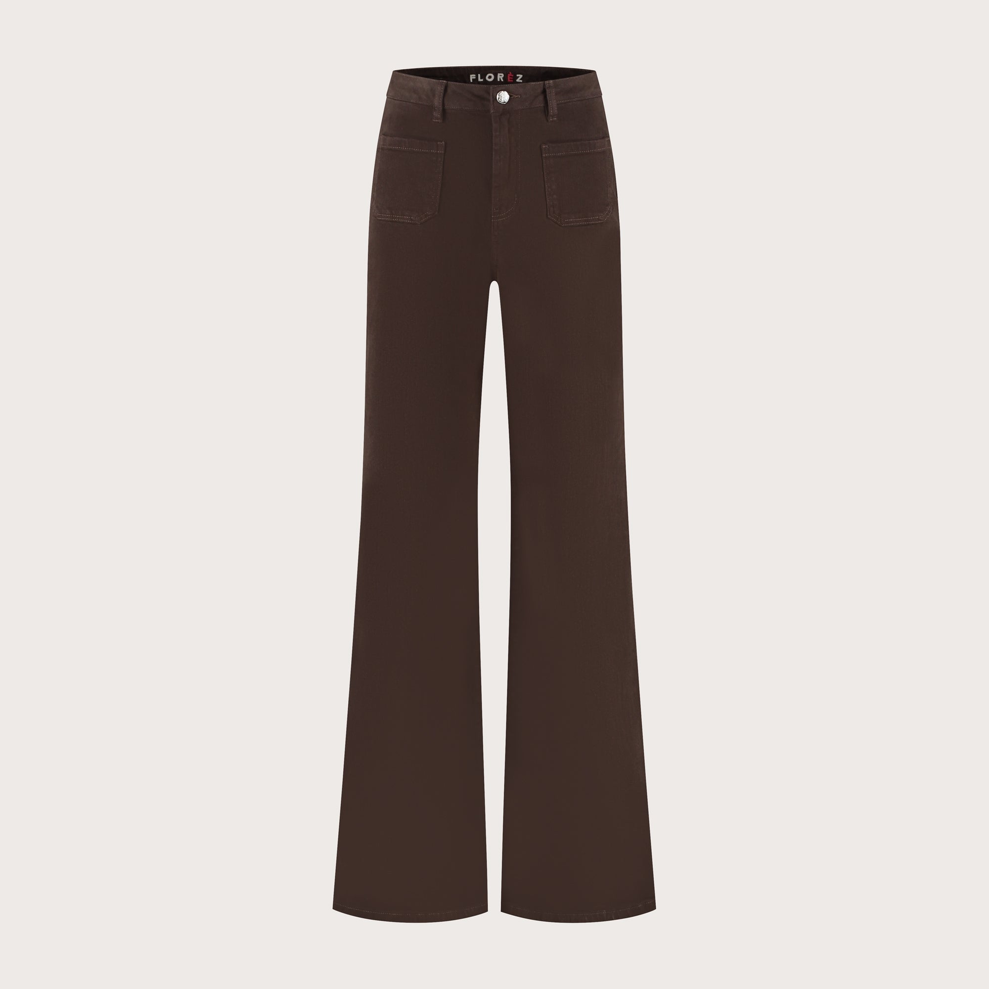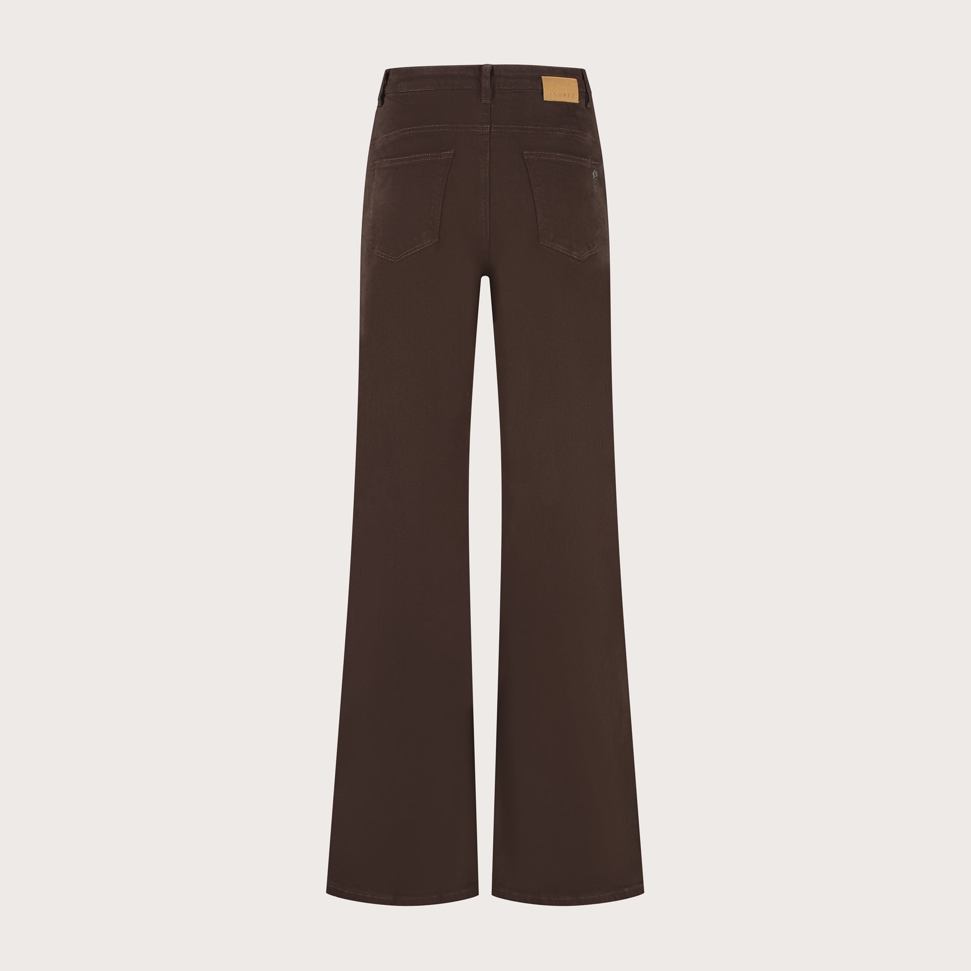 Ontdek de Ana Flared, ontworpen met een verhoogde taille en wijd uitlopende pijpen, ook wel bekend als een Palazzo model. De combinatie van het gestroomlijnde design en bruine wassing geeft deze broek een extravagante uitstraling. Perfect voor een verfijnde en zelfverzekerde look. Verkrijgbaar in meerdere kleuren.