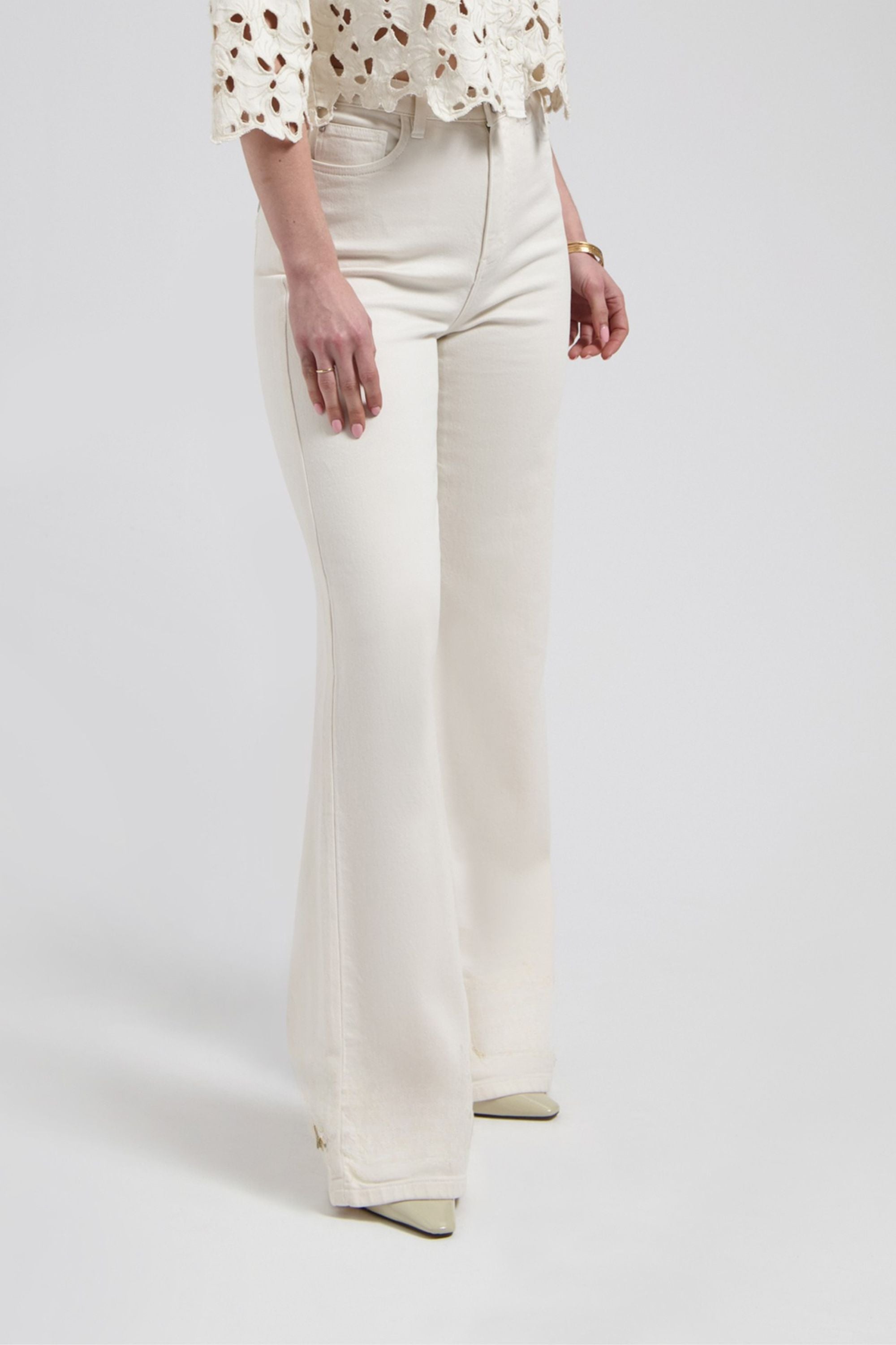Ontdek de Ana Flared, ontworpen met een verhoogde taille en wijd uitlopende pijpen, ook wel bekend als een Palazzo model. De combinatie van het gestroomlijnde design en de lichte wassing geeft deze broek een extravagante uitstraling. Perfect voor een verfijnde en zelfverzekerde look.  Verkrijgbaar in meerdere kleuren.