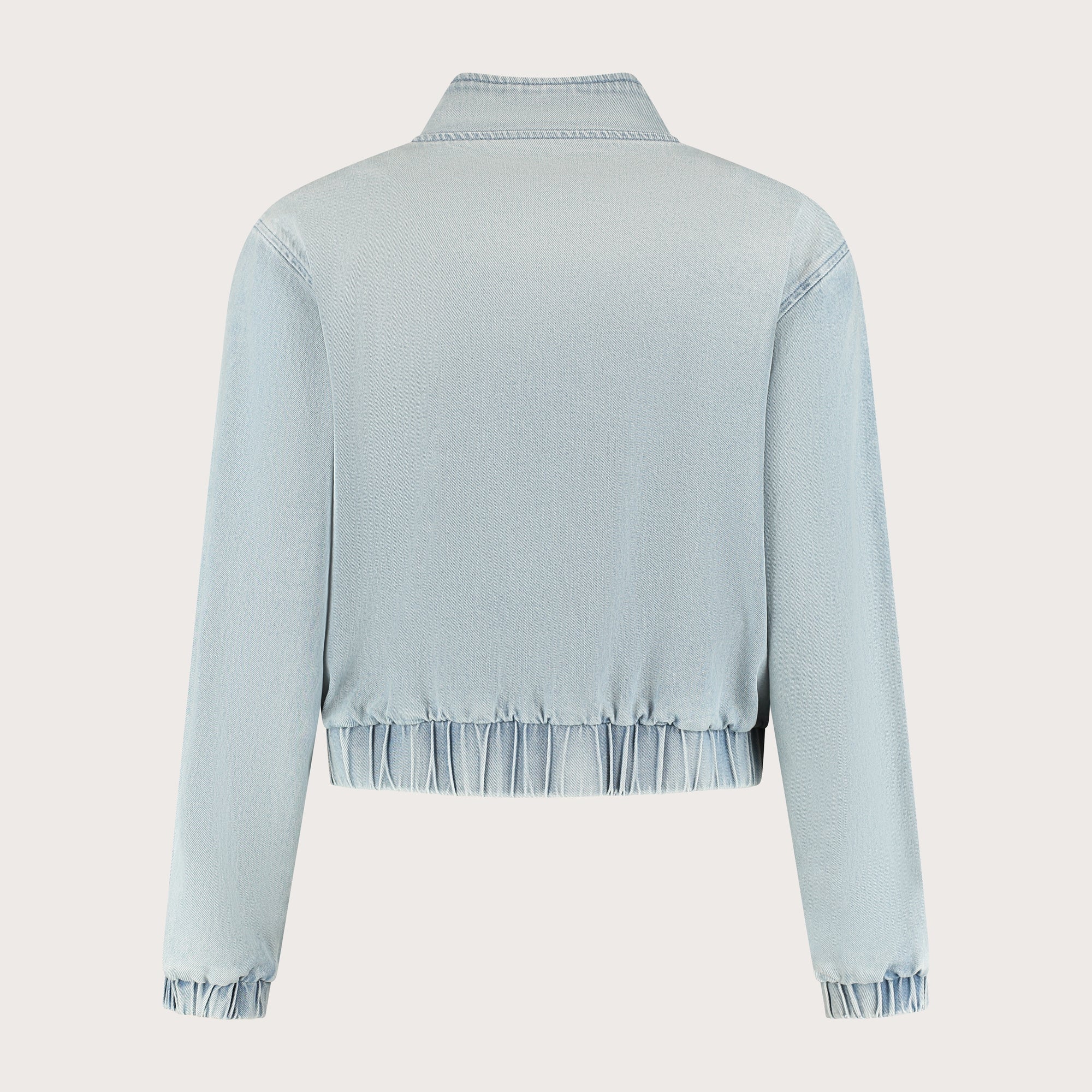 De Kyra Jacket is een denim jack in bomberstijl. De lichte denimstof voelt zacht en luchtig aan, waardoor het jasje comfortabel draagt. Dankzij de opstaande kraag, grote zakken en zilverkleurige rits heeft het jack een stoere en eigentijdse uitstraling. Verkrijgbaar in meerdere kleuren.