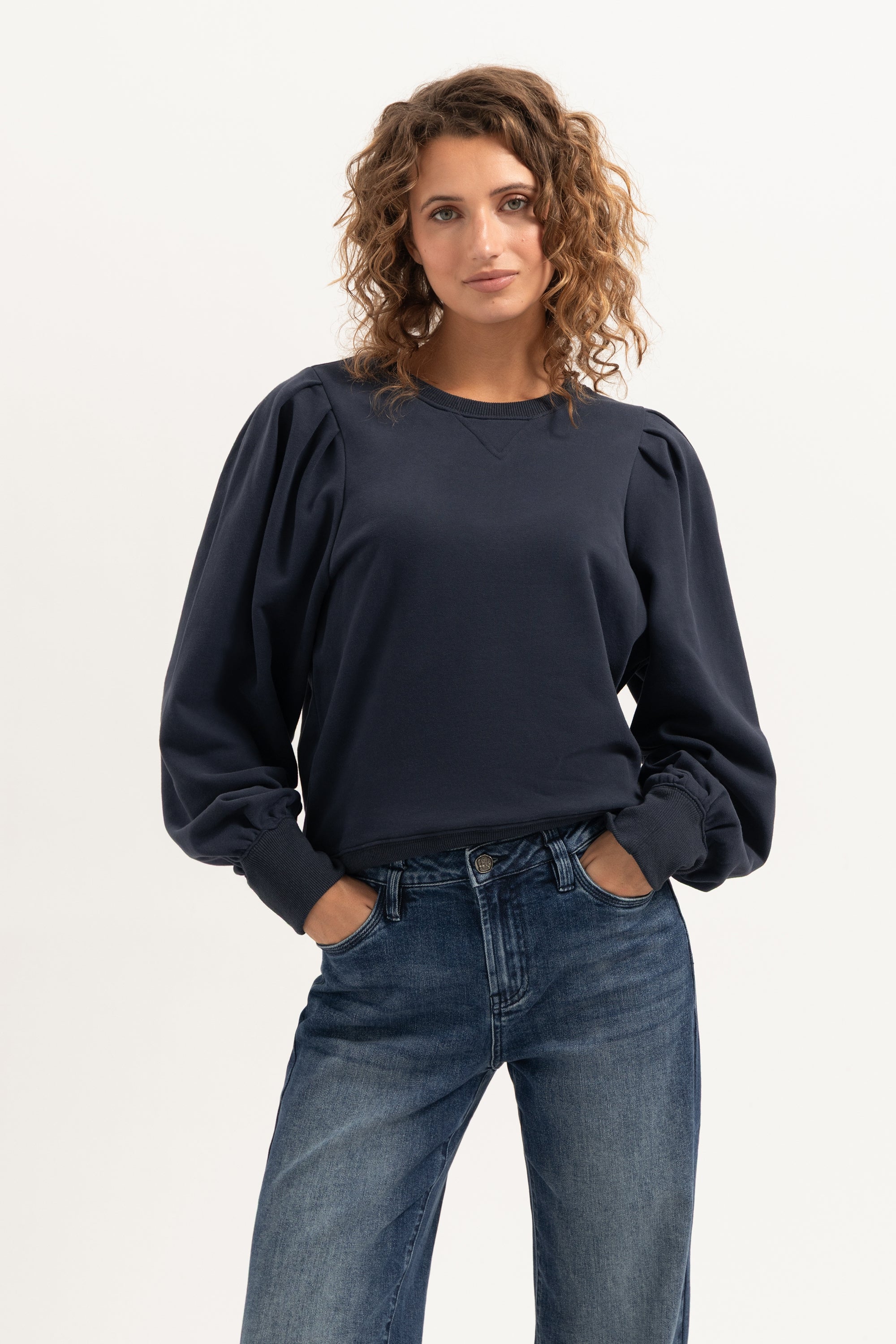 Deze zachte sweater is ontworpen met een ronde hals en pofmouwen voor een moderne en casual look. De relaxte pasvorm maakt de sweater veelzijdig en makkelijk te combineren met een jeans.