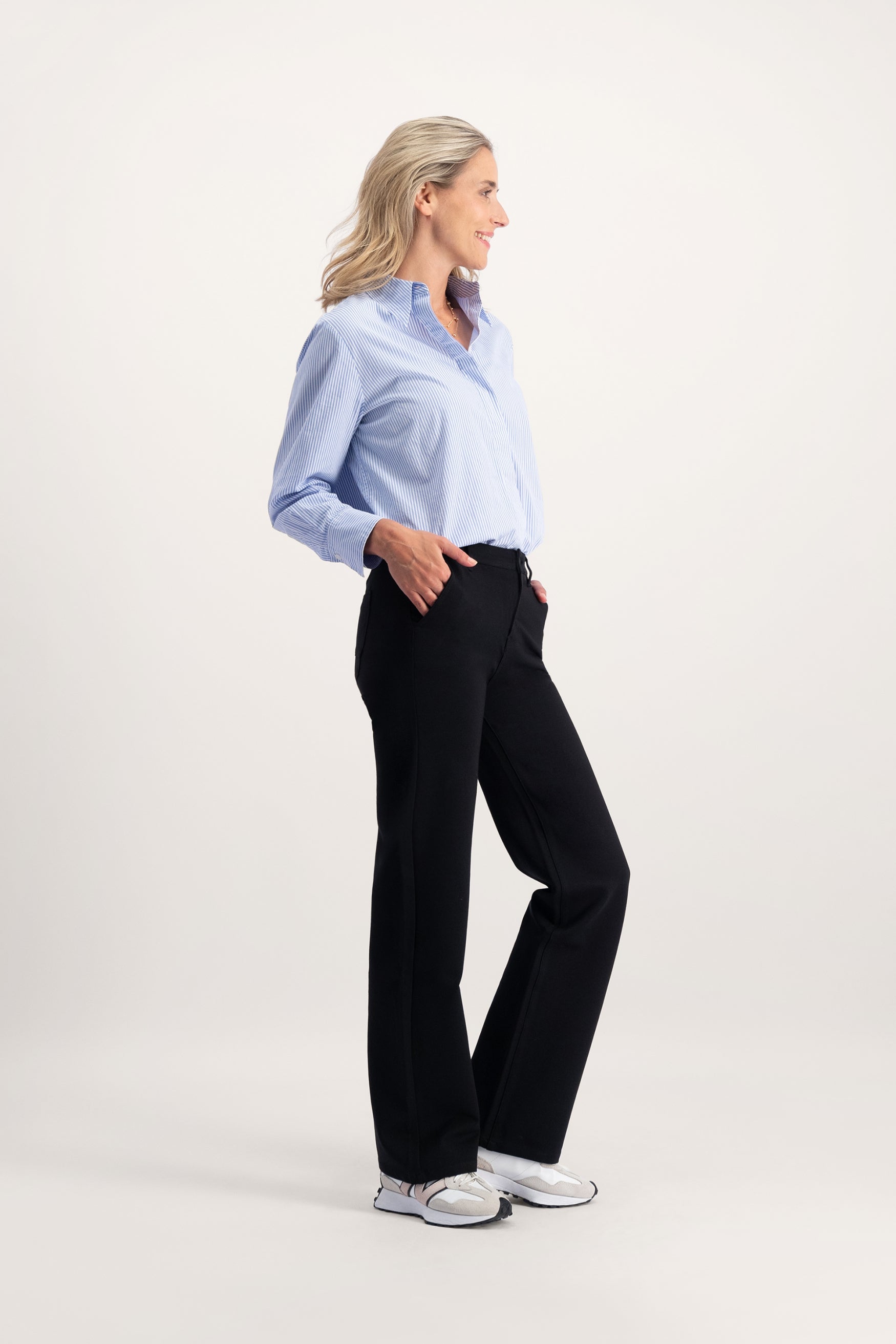 De Rowie broek in hoogwaardige Punto kwaliteit, een ideale keuze voor zowel casual als chique looks. Met een gestroomlijnd ontwerp en geen zakken aan de achterzijde, biedt deze broek ultiem comfort zonder concessies te doen aan stijl. De stof van de broek is niet alleen adembenemend, maar behoudt ook altijd zijn prachtige uitstraling. Ervaar de unieke pasvorm van deze broek, die niet alleen lengte toevoegt maar ook een slanker silhouet creëert. Ontdek het zelf en geef jouw garderobe een upgrade met deze veelzijdige en tijdloze broek!
